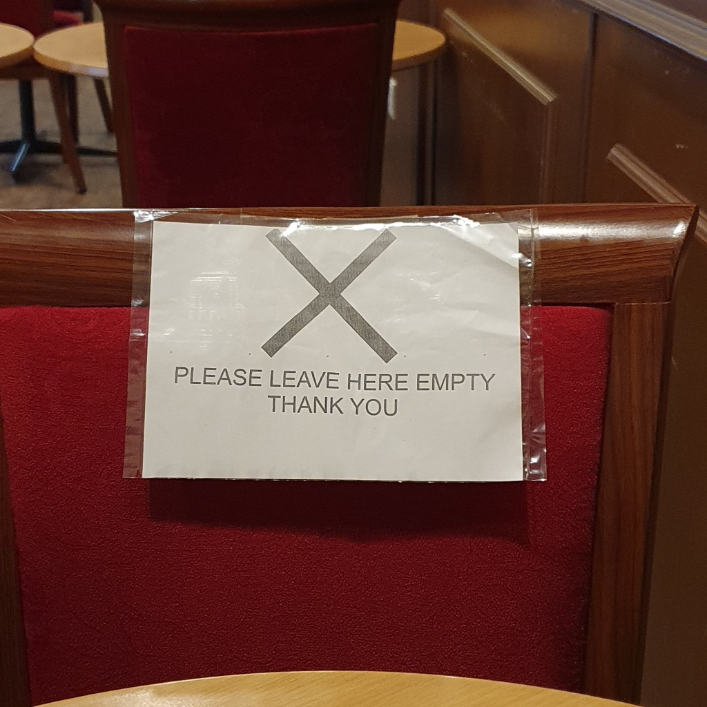 Finally, an example unique to both my country of residence and the current health crisis that has swept the world. Restaurants are trying hard to stay at no more than 50 percent capacity. To that end, many are designating seats at tables that are to remain empty. I truly believe that one restaurant did NOT intend the meaning I initially interpreted from the sign over these empty seats: “Leave here empty.”